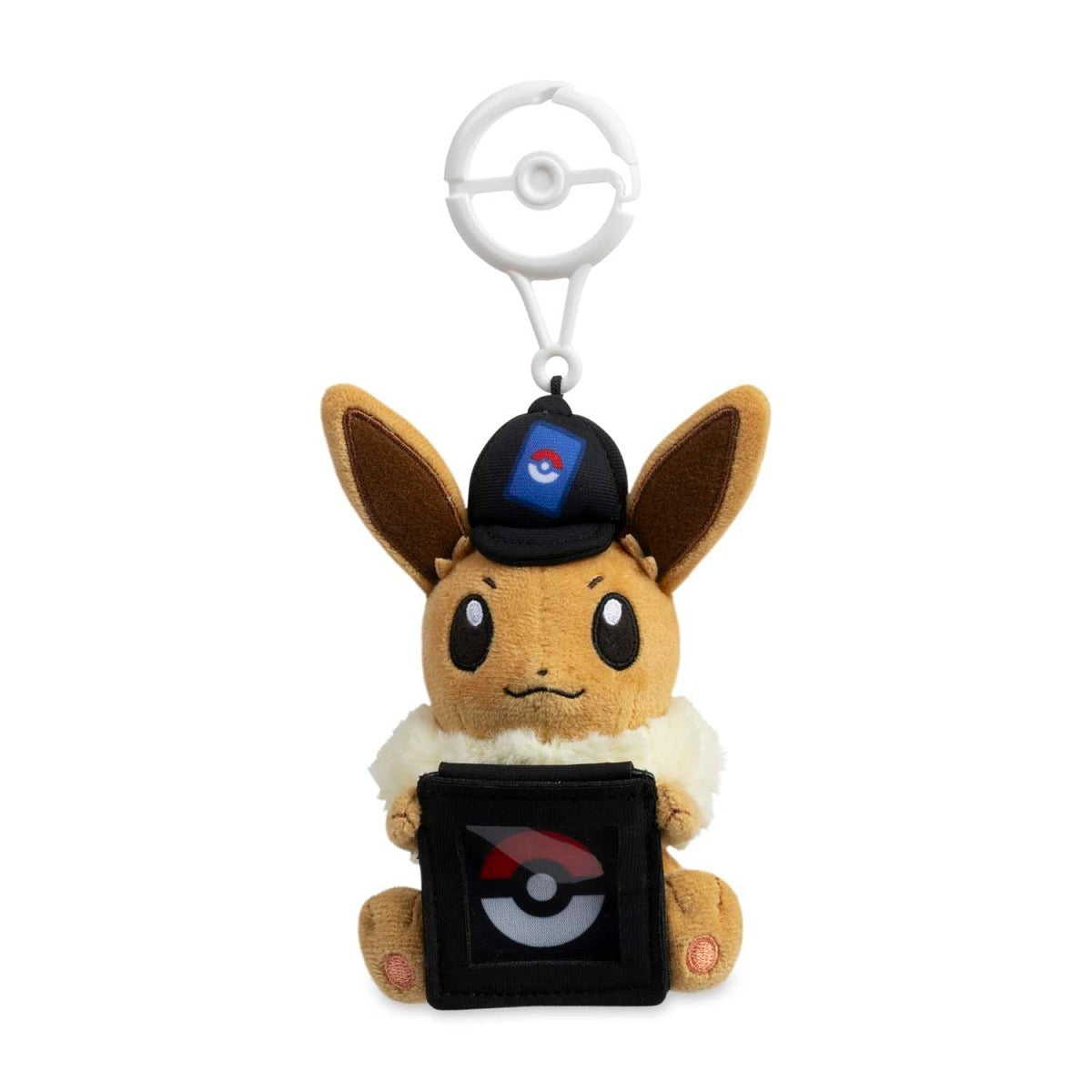 Give the world a glimpse of your favorite glimmering Pokémon TCG coin with some help from this adorable plush key chain featuring Eevee! It's getting in on the fun by wearing a Pokémon TCG-themed hat and displaying a holder with space to insert a coin from your own collection.